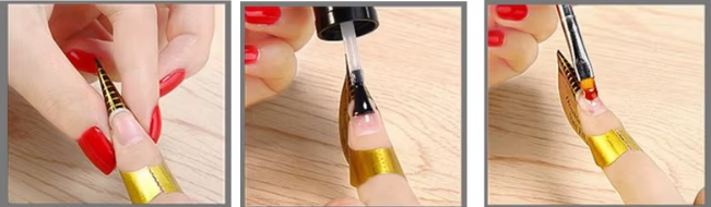 Gel na nohtu popilite in noht zavite v čistilni robček, čez pa namestite ščipalko za odstranjevanje gela. Počakajte 15 minut in odkrušite gel.